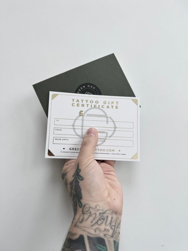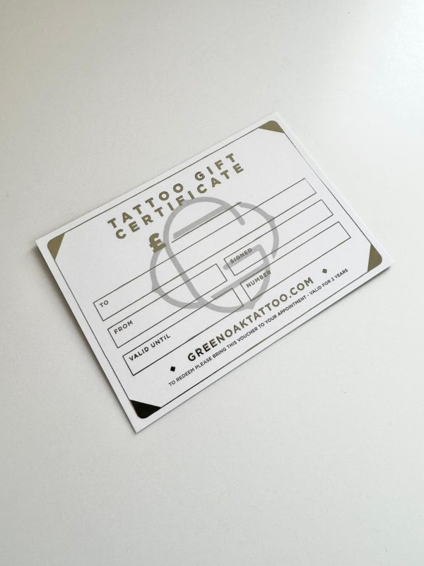 Home Gift Card Gift Certificate Gift Certificate To be used as full or part payment of a tattoo session Valid for 2 years from purchase Certificates cannot be used as a deposit Non-refundable and non-transferable Enter gift voucher amount ( £ ) Gift Certificate quantity Add to basket Guaranteed Safe Checkout